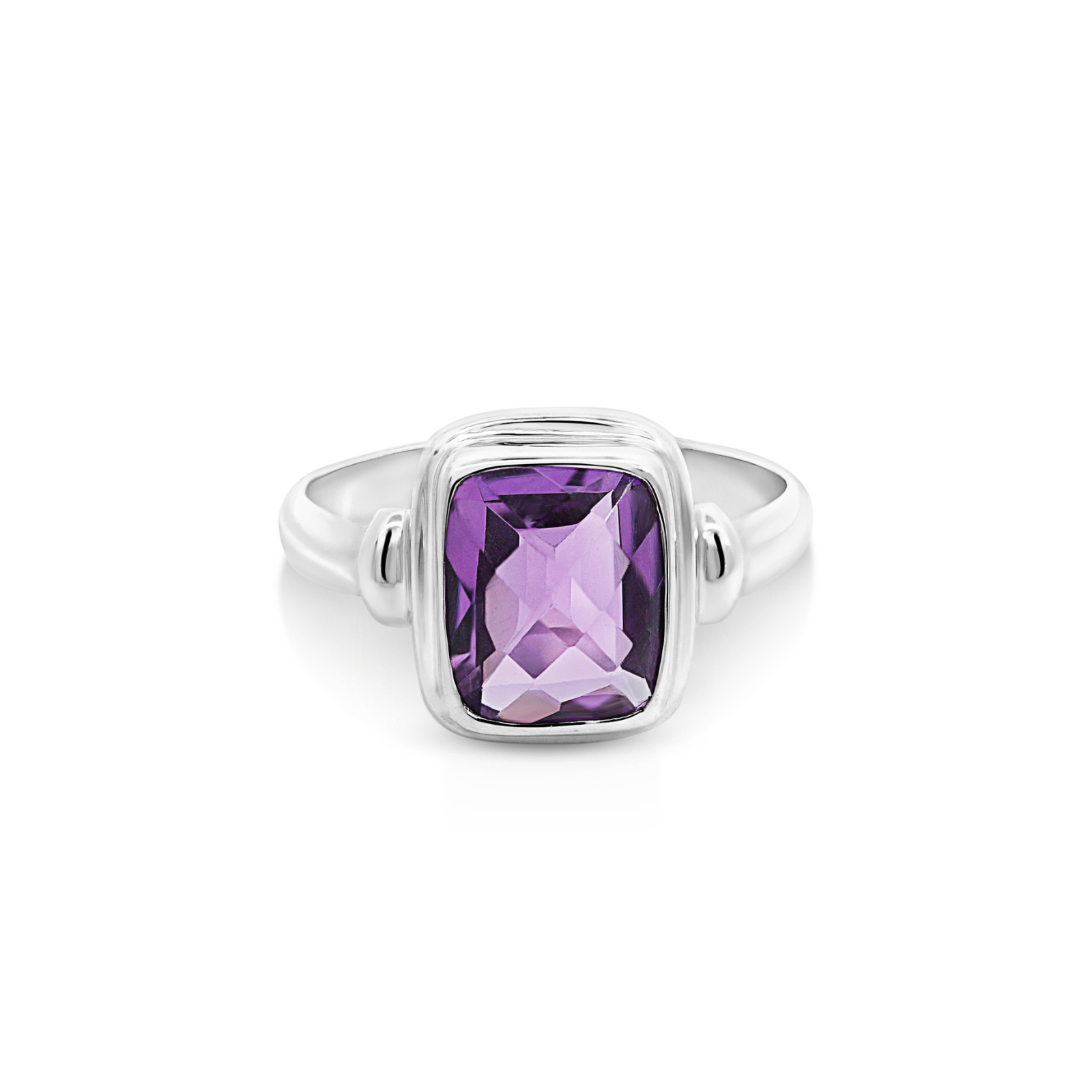 Sterling Silver Oval Amethyst Bezel Set Ring