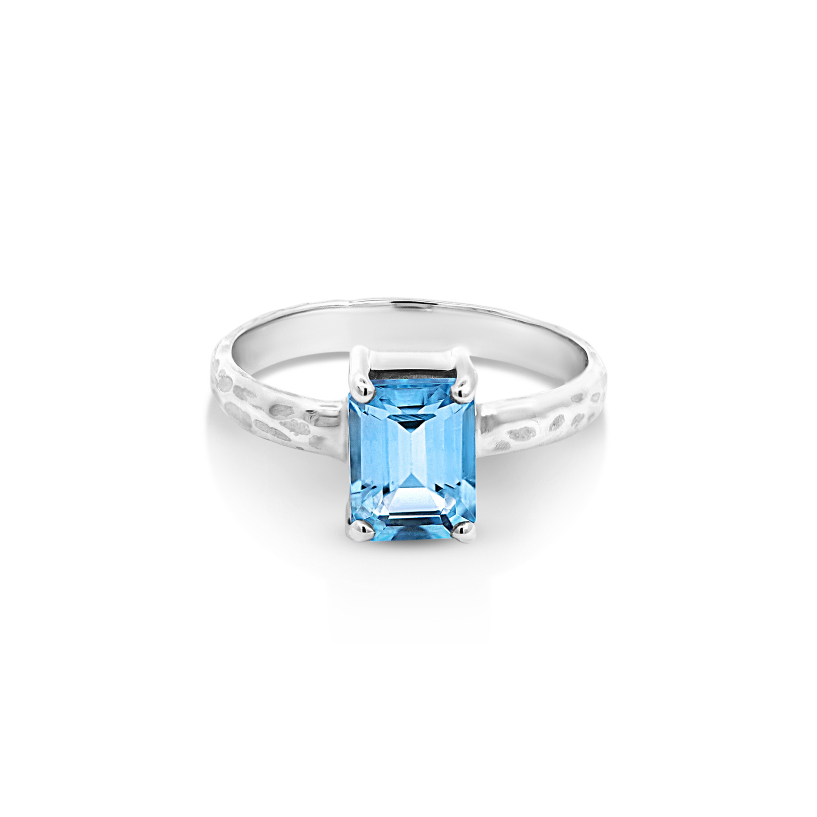 Sterling Silver Aquamarine Hammerset Dress Ring