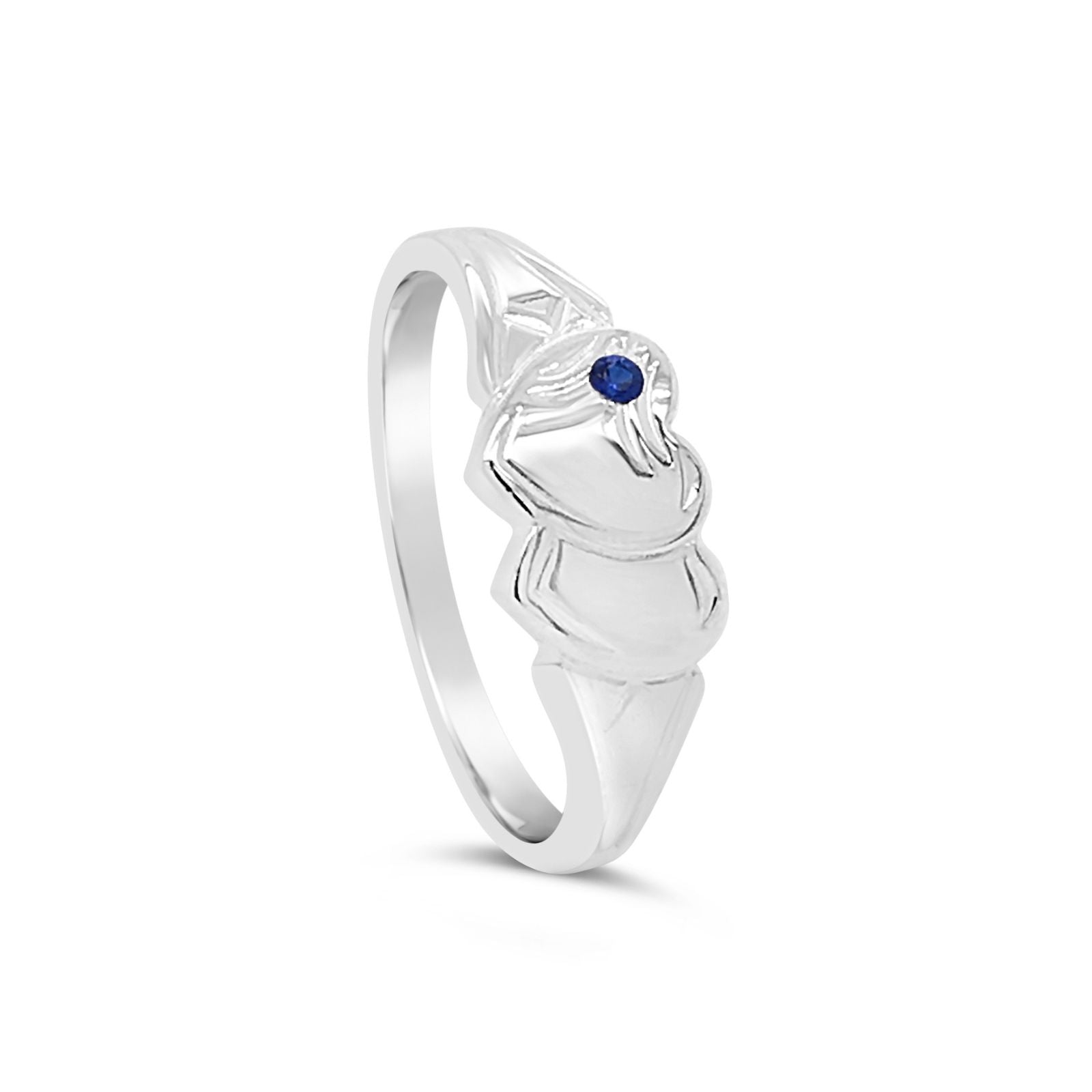 Sterling Silver Double Heart Blue Cz Signet Ring