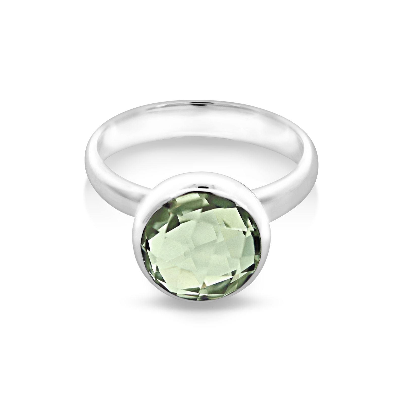 Sterling Silver Round Peridot Claw Set Ring With Beaten Band