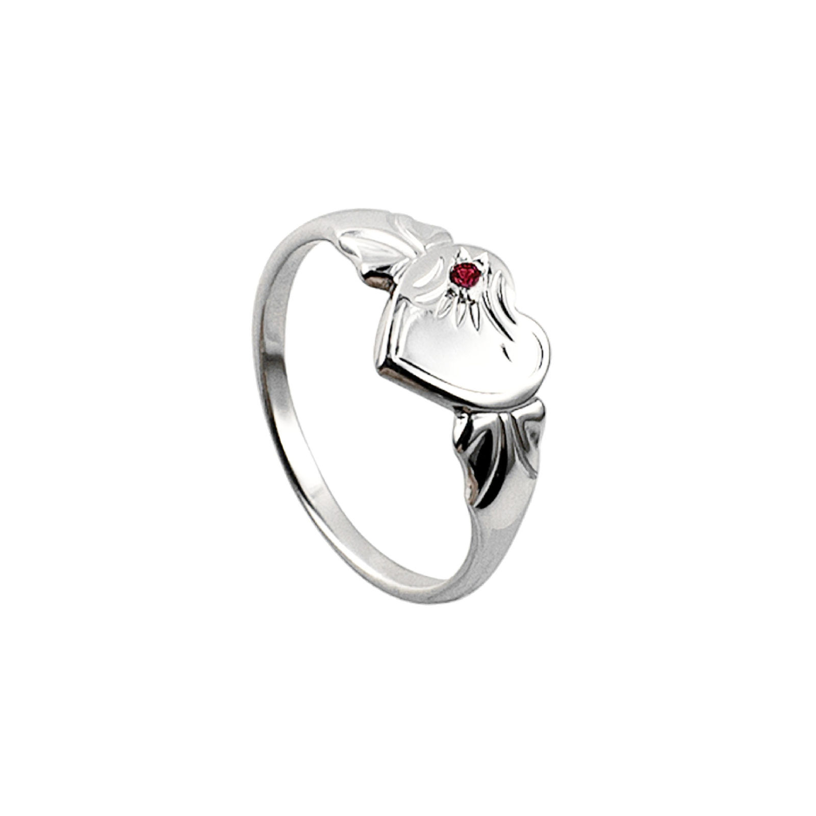 Sterling Silver Single Heart July Birthstone Signet Ring
