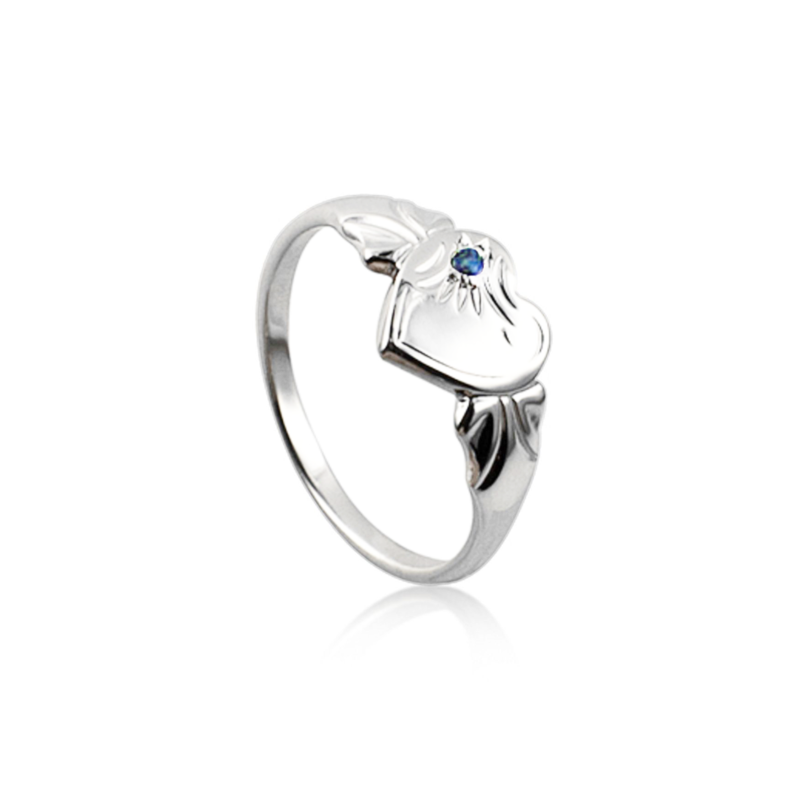 Sterling Silver Single Heart September Birthstone Signet Ring